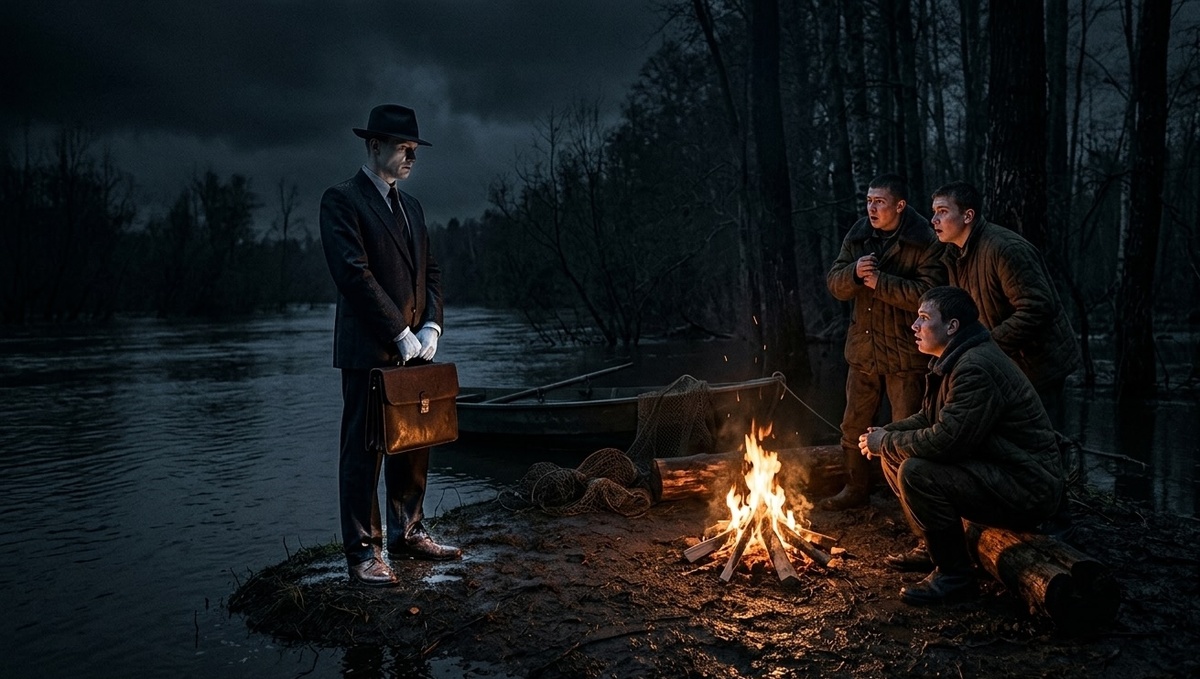 Мужчина резко разогнулся. Он не произнес ни слова, не взглянул в нашу сторону. Просто сделал несколько шагов назад, в ту сторону, где за деревьями стояла глубокая вода, и… растворился. Не ушел, а именно исчез, будто его съела сама темнота. Не было ни звука всплеска, ни хруста веток. Только мертвая тишина.