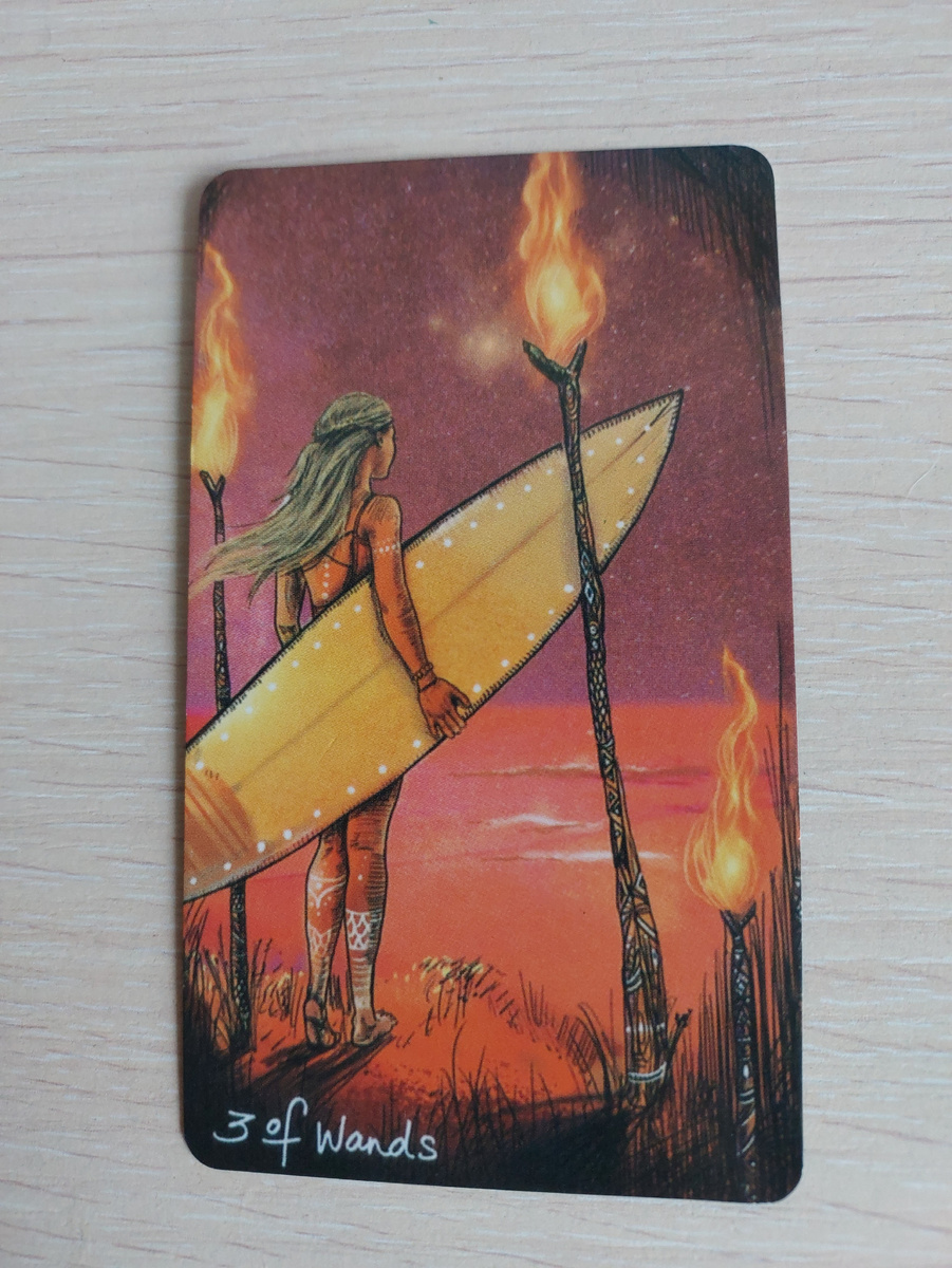 Карта дня на 25 марта 2026 - Тройка Жезлов. Прямое положение. Колода: "The light seers tarot/Таро светлого провидца".