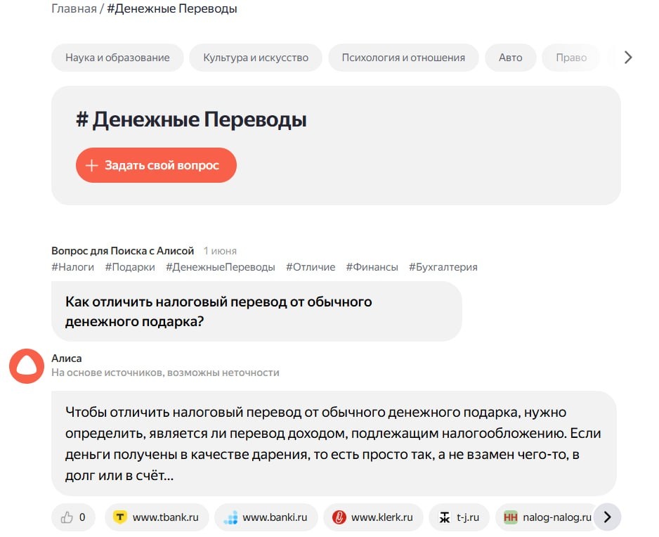 https://ya.ru/neurum/t/%D0%94%D0%B5%D0%BD%D0%B5%D0%B6%D0%BD%D1%8B%D0%B5%D0%9F%D0%B5%D1%80%D0%B5%D0%B2%D0%BE%D0%B4%D1%8B Знакомьтесь это ya.ru/neurum новый сервис Яндекса 🫠. Если коротко: каталог вопросов и ответов, которые реальные пользователи задавали Поиску с Алисой (Яндекс Нейро). Как это устроено: 1. Пользователь задаёт вопрос в Яндекс Нейро, а Алиса отвечает, опираясь на источники из поиска 2. Популярные вопросы автоматически попадают в Нейрум и группируются по тегам/категориям Чтож Яндекс пошел еще дальше и делает отдельные индексируемые страницы под промты пользователей! С другой стороны по сути тут готовая база реальных пользовательских запросов. Можно использовать для аудита видимости в нейросетях, составления контент-плана, блоков вопрос-ответ.