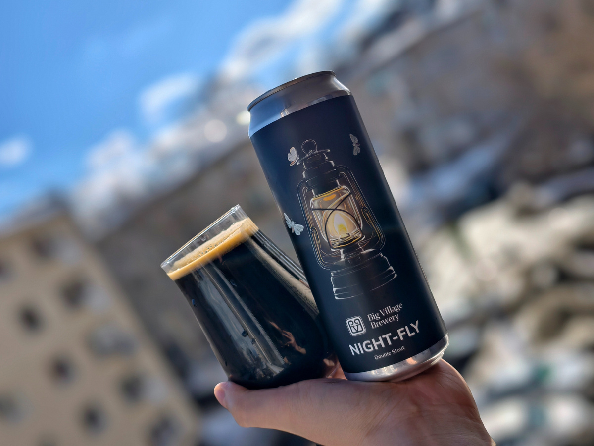 Night-fly - это double stout с лактозой, овсяными хлопьями, с добавлением плодов локальной копченой груши высушенной дымом в традиционной коптильне на фруктовых дровах, от пивоварни Big Village