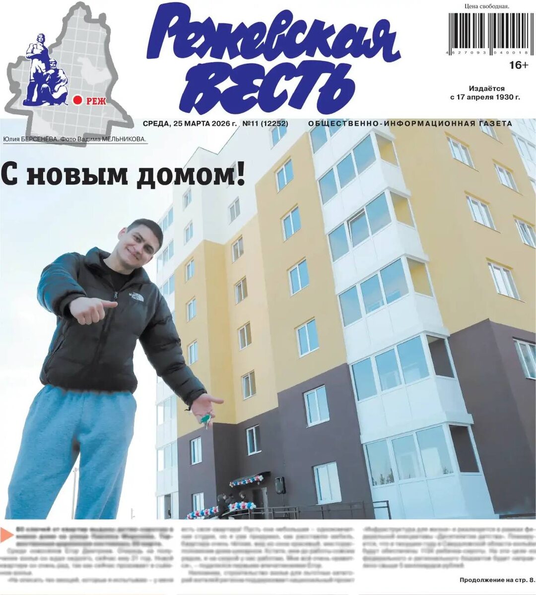 ! ☀️ В сегодняшнем выпуске «Режевской вести»: 🏠 Новоселье на улице Павлика Морозова! На первой полосе рассказываем о торжественной церемонии вручения ключей от нового дома. Продолжение на стр. 8. 🏆 Трудовые коллективы на старте! Как прошел фестиваль ГТО в Реже и кто стал самым спортивным в этом году? Подробности на стр. 9. 🎓 Гордость нашего города: Наши школьники – в числе лучших! 5 призовых мест на региональной олимпиаде и итоги муниципального этапа фестиваля проектов «Планета открытий» на стр. 10. 🌸 Праздник в селе Глинском: Традиции, красота и творчество на 31-м районном конкурсе «Берегиня». Окунитесь в атмосферу женственности на стр. 13. ✅А также еще много интересного в рубрике «Спорт» и полезного в рубрике «Здоровье». Приятного вам чтения!