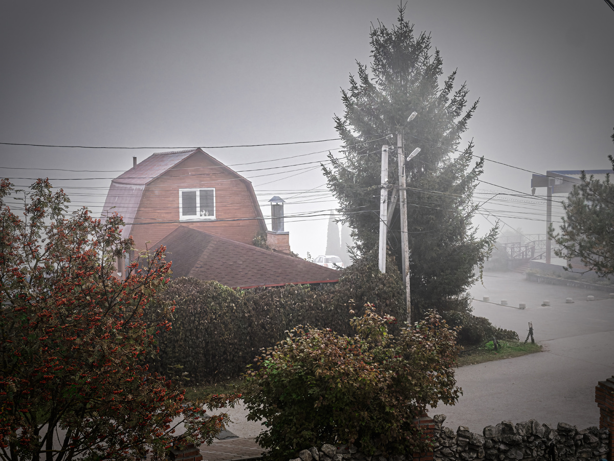 Подъем в три часа ночи - сомнительное удовольствие ⏰, но ради того, чтобы увидеть мир, утонувший в молоке 🥛, стоило рискнуть сном. Так и началось мое путешествие в усадьбу Поленово. Когда я вышел за порог, воздух был настолько плотным и влажным, что его хотелось раздвигать руками 🌫️. Дома в поселке полностью скрылись за белой завесой 🏘️. Только гроздья рябины горели яркими пятнами сквозь серую муть 🍒. Вокруг стояла тяжелая тишина. Я спустился к Оке, пробираясь к берегу скорее по памяти, чем по приборам 🌊. Берег и тени на воде ⚓ У реки видимость пропала совсем. Из белой пустоты начали медленно проступать очертания чего-то масштабного. Теплоход «Тарусский» застыл у причала 🚢. В таком свете он выглядел не как обычный транспорт, а как декорация к фильму про корабли-призраки 👻. Вдоль берега выстроились лодки и катера. Они стояли ровными рядами, будто их аккуратно расставили в огромном пустом ангаре 🛶. В тумане все звуки вязнут, даже вода бьется о берег совсем глухо. Я подошел к само