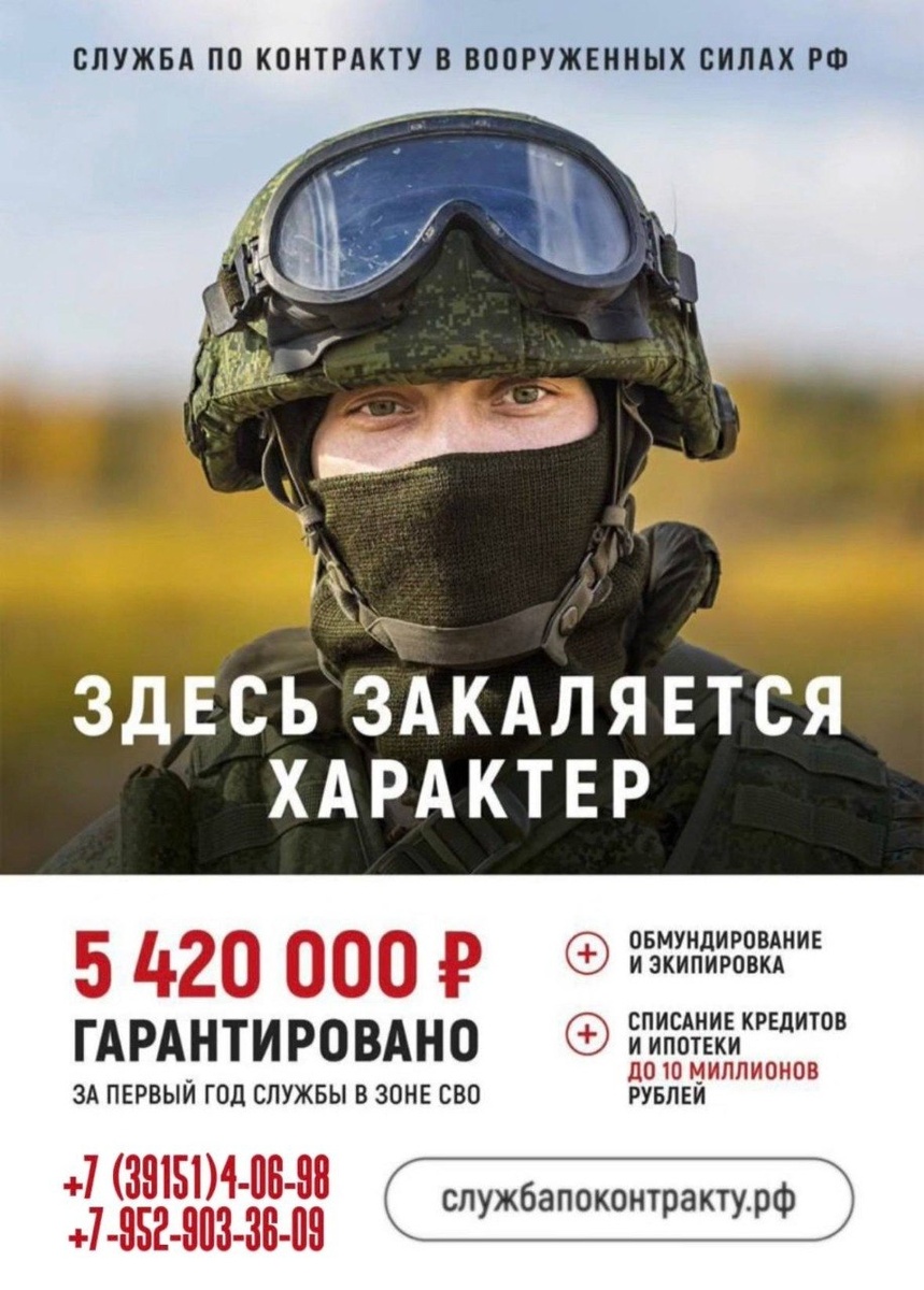 ? 🇷🇺 Присоединяйся к СВОим! Единовременная выплата по Красноярскому краю: 2 500 000 - региональная выплата 400 000 - федеральная выплата 100 000 - выплата от администрации Ачинского муниципального округа. По вопросам прохождения военной службы по контракту обращайтесь в Военный комиссариат города Ачинска, Ачинского и Большеулуйского районов по тел. 8 (39151) 4-06-98, 8-952-903-36-09.