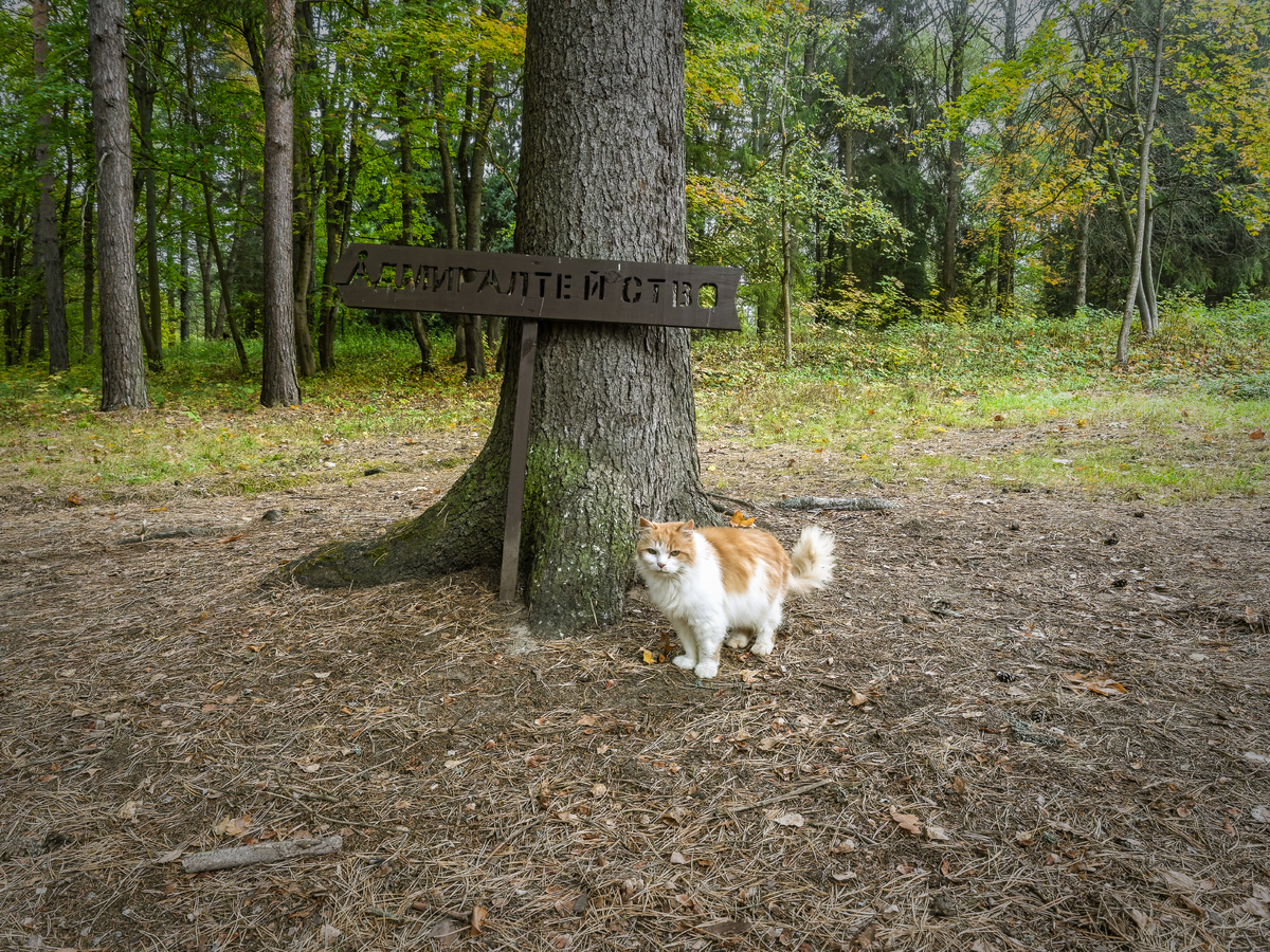 В старых усадьбах всегда есть кто-то, кто присматривает за порядком. 🧐 В Поленово я столкнулся с таким персонажем почти сразу, стоило только свернуть на лесную тропинку. 🌲 Иду по хрустящему гравию, вдыхаю этот особый осенний воздух, и вдруг за деревьями показывается указатель «Адмиралтейство». ⚓ А прямо под ним, на мягкой хвое, развалился рыже-белый пушистый котяра. 🐈 Кот глянул на меня так, словно я сильно задерживаю важный прием. 🤨 Спокойный, важный и совершенно домашний. В Поленово вообще нет этой музейной чопорности, тут во всем чувствуется уют. ✨ Я присел рядом, и кот, недолго думая, подставил голову под ладонь. Шерсть у него оказалась очень мягкой и теплой, несмотря на утреннюю прохладу. Думаю, этот парень знает о художнике Поленове и тайнах усадьбы побольше любого экскурсовода. 🐾 Получив свою порцию ласки, «хозяин» пошел показывать владения. 👑 Топал впереди, задрав хвост трубой, и порой оглядывался: «Ну чего ты там плетешься? Иди за мной, покажу самое интересное». 😸 Мы вы