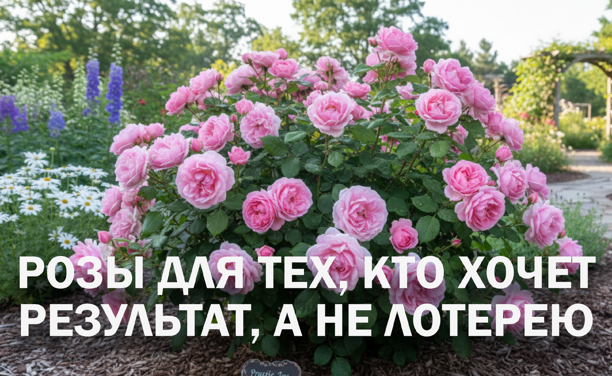 Я Алёна, специалист по садовым растениям Питомника «Росток». Знаете, какой вопрос я слышу чаще всего? «Алёна, дай мне такую розу, чтоб посадил — и забыл. Чтобы не бегать вокруг неё с градусником и не заматывать в октябре в три слоя мешковины, как египетскую мумию». Многие до сих пор уверены, что роза — это обязательно капризная «барыня», которая падает в обморок от первого заморозка. Если покупать неженку с южного рынка — так и будет. Но в нашем питомнике на полях закаляется совсем другая генетика. Речь о канадских розах. Это, честно говоря, просто бронебойные растения. Они создавались специально для холодного климата, где -35°C — обычное дело. Давайте по-честному: раньше я сама думала, что «канадка» — это что-то вроде облагороженного шиповника. Мол, живучая, но скучная. Ох, как я ошибалась! Когда увидела их цветение в массе на наших площадках, скепсис испарился. Начнем с сорта Прейри Джой. Это настоящая «рабочая лошадка» для эстетов. Она выдает такие густомахровые розовые цветы, ч