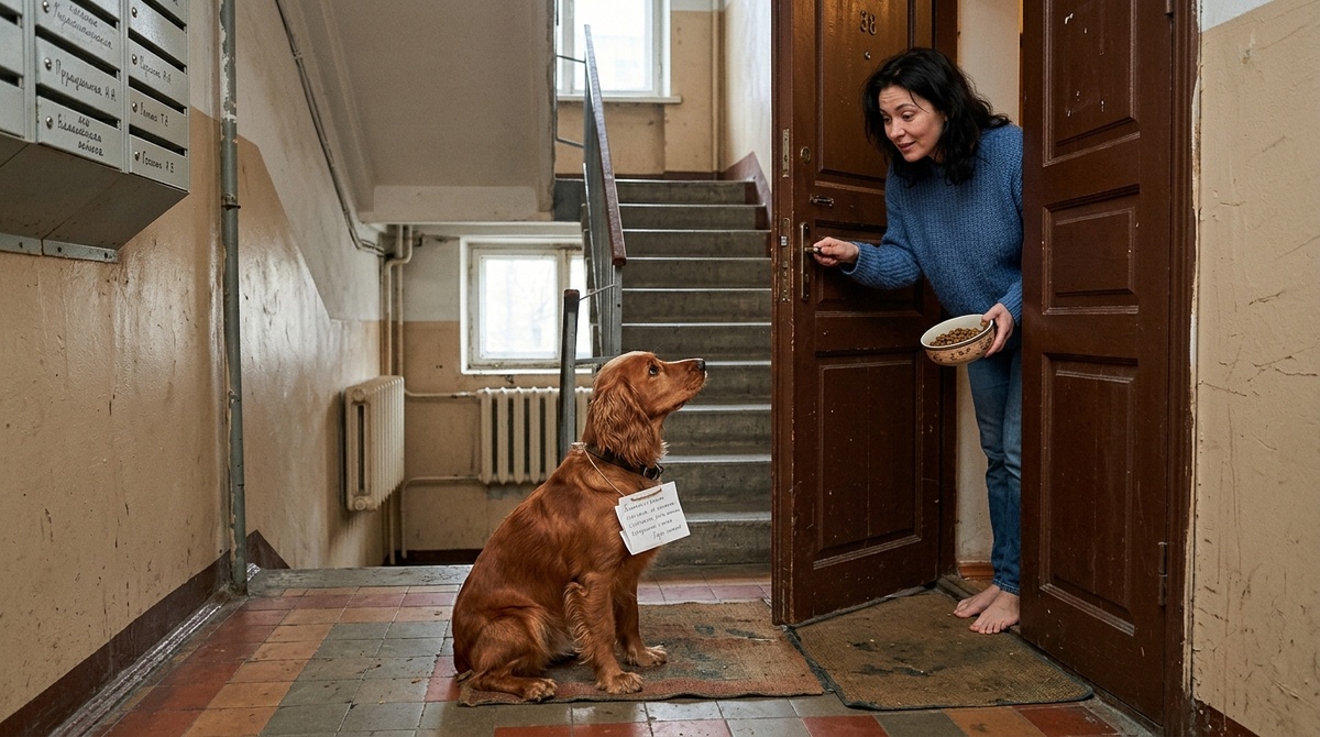 Было семь утра, понедельник, и я вышла за мусором в тапках и старом халате. А она сидела. Голова на передних лапах, глаза снизу вверх. Не скулила, не лаяла, не виляла хвостом. Просто смотрела на дверь так, будто ждала, что та откроется сама.
