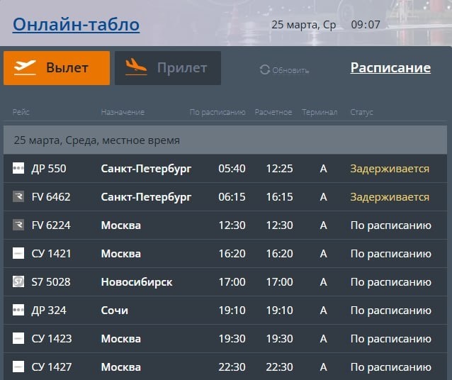Два рейса из Санкт-Петербурга в Челябинск задерживаются на несколько часов