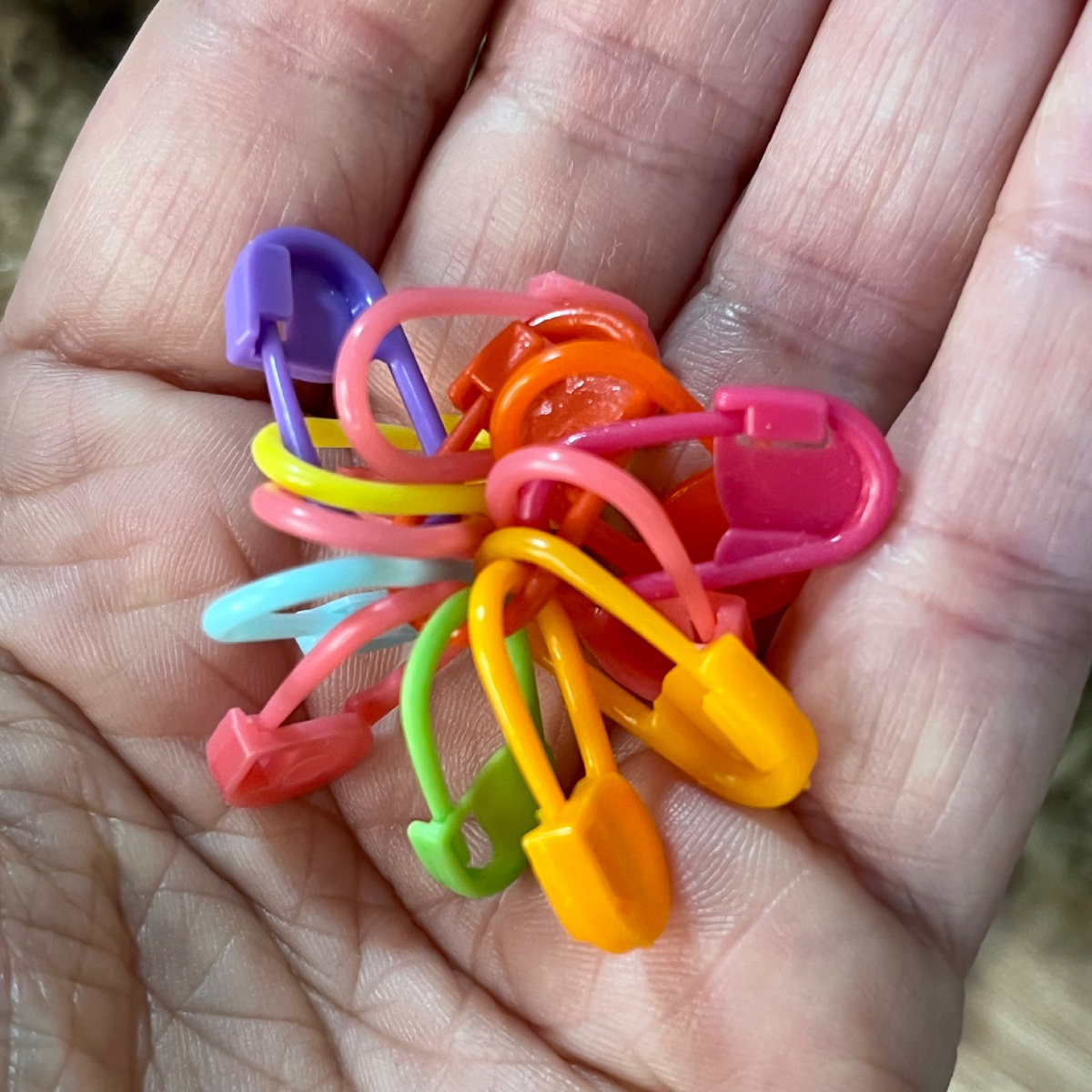 1. Маркеры. Помогут не сбиться со счета петель. Легко крепятся на нить и позволяют отслеживать узор. Можно отметить начало ряда при вязании крючком по