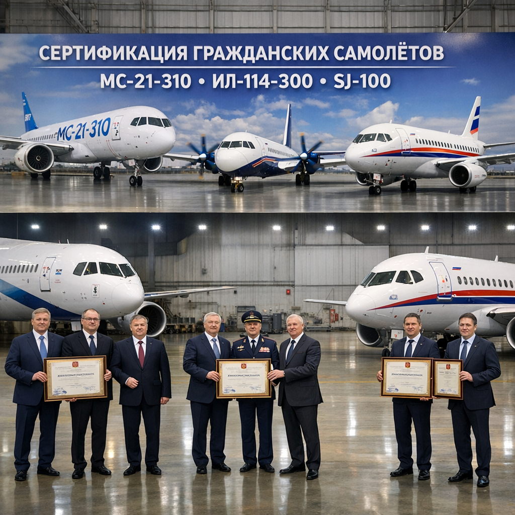 Российская авиационная промышленность переживает исторический момент. После многолетних испытаний, доработок и преодоления санкционных барьеров сертификация трёх ключевых самолётов — МС-21-310, Ил-114-300 и SJ-100 — выходит на финальную стадию. Это не просто формальность: завершение процесса откроет двери для массового производства, поставок авиакомпаниям и настоящего импортозамещения в гражданской авиации. Мы дождались — самолёты, созданные на базе передовых российских технологий, готовы к небу. Эти машины представляют разные сегменты рынка: среднемагистральный лайнер МС-21-310 для дальних рейсов, региональный турбовинтовой Ил-114-300 для коротких маршрутов и ближнемагистральный SJ-100 для интенсивных внутренних линий. Их одновременный "выход на свободу" укрепит позиции России на глобальном рынке и обеспечит независимость от иностранных поставок. МС-21-310 — флагман проекта, среднемагистральный пассажирский самолёт на 163–211 мест, способный летать до 6000 км. Его главная фишка — кры