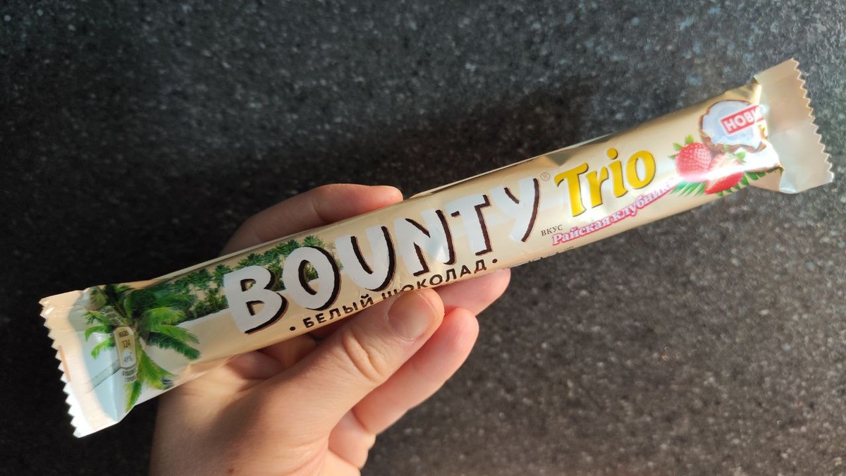 🇷🇺 Весенняя новинка от известного бренда. Помню было ещё Bounty с манго, но мне показалось на разок😇 Упаковка большая, на три шоколадки. Конечно, мне бы зашёл сразу мини вариант на один батончик, но это чисто моя вкусовщина😁 Аромат очень приятный - клубнично-йогуртный. Cочетание вообще отличное - клубника, кокос и белый шоколад😉 Сама клубничка во вкусе не ярко выражена, но не спутаете. Белый шоколад придает сливочных ноток, прям клубника со сливками. Щедрый слой шоколада, который отлично сохраняет форму батончика. Новинка прикольная, сладкоежкам зайдет. #Рекомендосьен Брала в магазине #ДА #десерт #обзореды #вкусняшка #сладкоежка #фудблог #фудобзор #россия