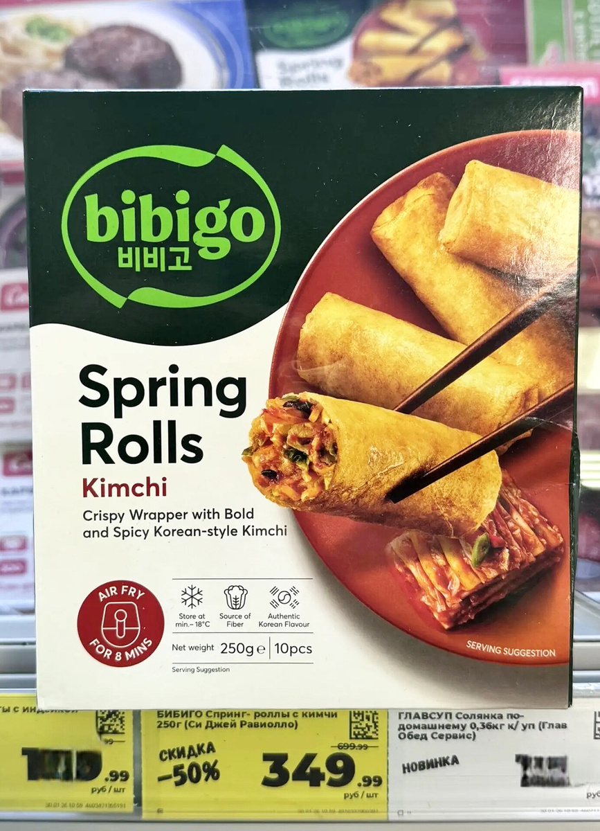 Взял на пробу вот такие спринг роллы с начинкой из кимчи.