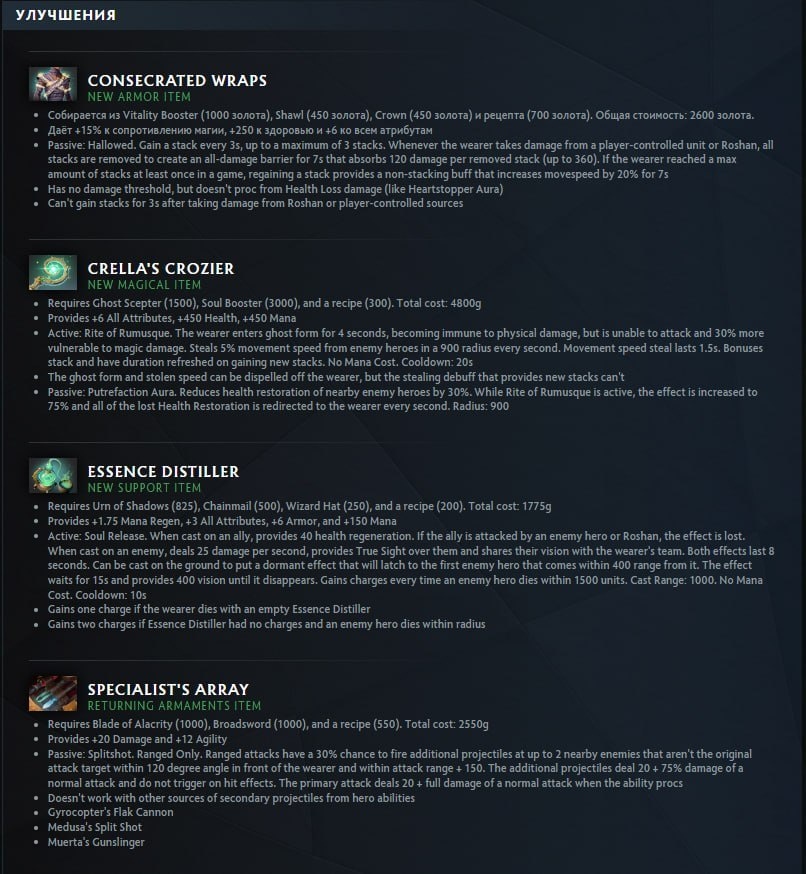 Среди них — ранее удалённый нейтральный предмет Specialist’s Array, который теперь можно собрать.