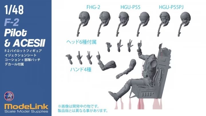 ModeLink из Японии выпустила фигуру японского пилота со множеством альтернативных деталей для модели Mitsubishi F-2 в масштабе 1/48: