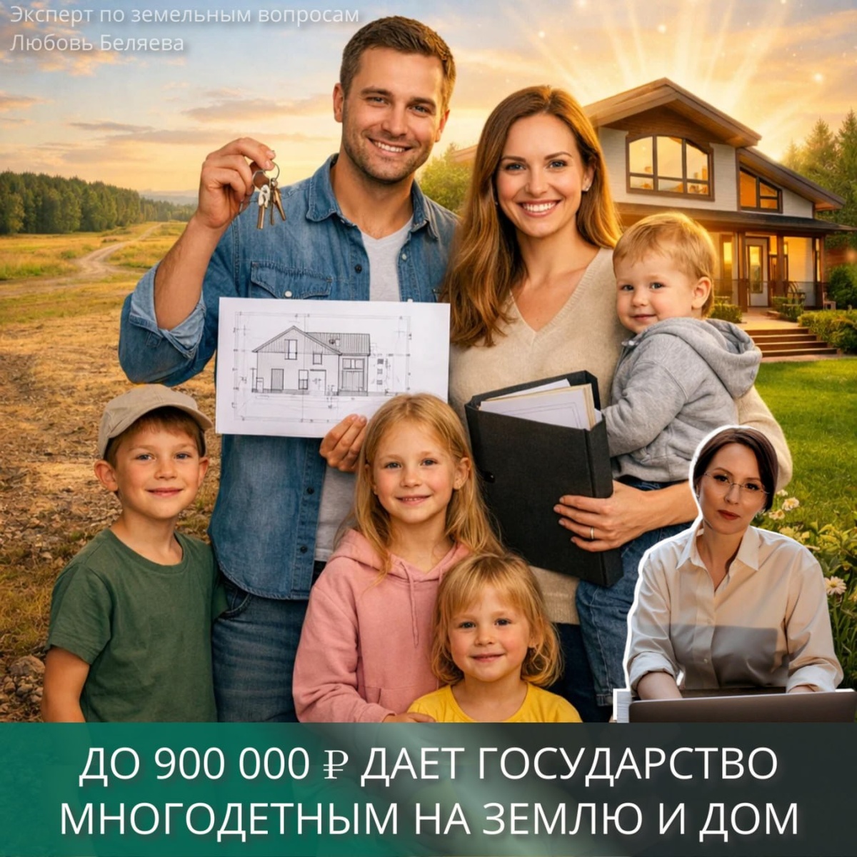 💰 До 900 000 ₽ дает государство 👨👩👧👦 многодетным на землю и дом