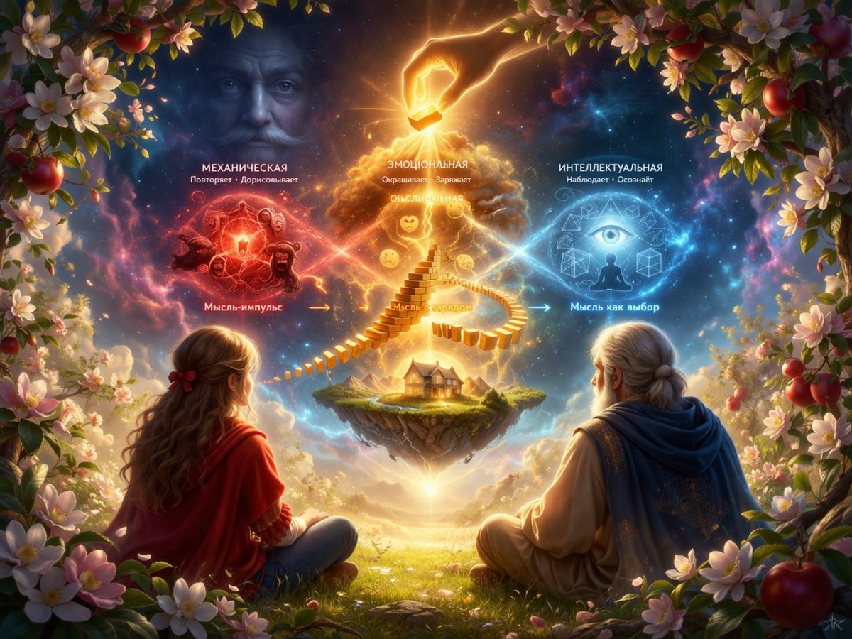Мысли — не просто шум. Они — кирпичи. И если я не выбираю, какой кирпич взять в руки, механическая часть центра строит дом сама. И я потом живу в этом доме.