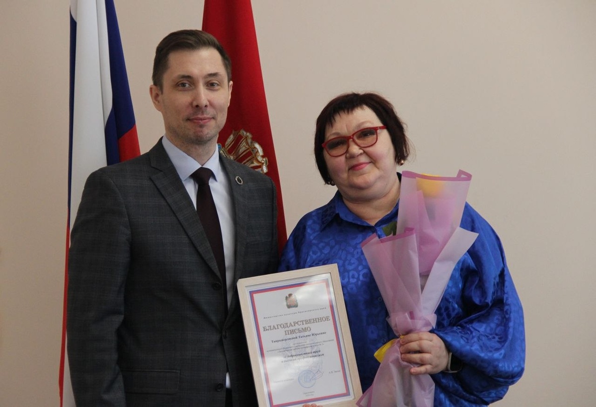 С профессиональным праздником всех поздравили глава округа Евгений Петренко и председатель окружного Совета депутатов Сергей Черкашин. 💐Почетной грамотой Министерства культуры Красноярского края награждены: Свириденко Юлия Николаевна, преподаватель Лесосибирской детской музыкальной школы №2 Ягодина Екатерина Александровна, преподаватель Лесосибирской детской музыкальной школы №2 Давлятшина Олия Минсагировна, библиотекарь Центральной детской библиотеки имени Чехова Централизованной библиотечной системы города Лесосибирска 💐Благодарственным письмом Министерства культуры Красноярского края награждены: Танрывердиева Татьяна Юрьевна, преподаватель Лесосибирской детской музыкальной школы №2 Голубцова Анастасия Валериевна, организатор экскурсий Енисейского историко-архитектурного музея-заповедника имени Кытманова Крамаренко Анжелика Юрьевна, заведующий туристско-информационным центром Енисейского историко-архитектурного музея-заповедника имени Кытманова 💐Почетной грамотой Главы Енисейс