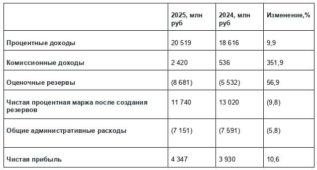 Займер опубликовал отчёт по МСФО за 2025 год 🔹Чистая прибыль 4,3 млрд руб (+10,6% г/г) 🔹процентные доходы выросли на 10% (до 20,5 млрд руб.), 🔹комиссионные доходы взлетели в 4,5 раза — до 2,4 млрд руб 🔹Чистая прибыль за IV кв 1,1 млрд руб (–8,9% г/г) 🔹Процентные доходы за год выросли до 20,5 млрд руб (+9.9% г/г), комиссионные — до 2,4 млрд. 💰СД в мае озвучит рекомендации по дивидендам за IV кв 2025 года Компания проводит глубокую трансформацию и уходит от модели, завязанной исключительно на PDL-займах, превращаясь в многопрофильного игрока с собственным банком, платформами для бизнеса и цифровыми сервисами. Рост комиссионных доходов в 4,5 раза стало следствием трансформации: развития виртуальных карт, PoS-займов и транзакционных сервисов. Выросли резервы группы с 5,5 млрд до 8,7 млрд руб. (+57%). Группа объясняет это ужесточением кредитной политики и переходом на более качественных заёмщиков, что в моменте давит на чистую процентную маржу после создания резервов. О