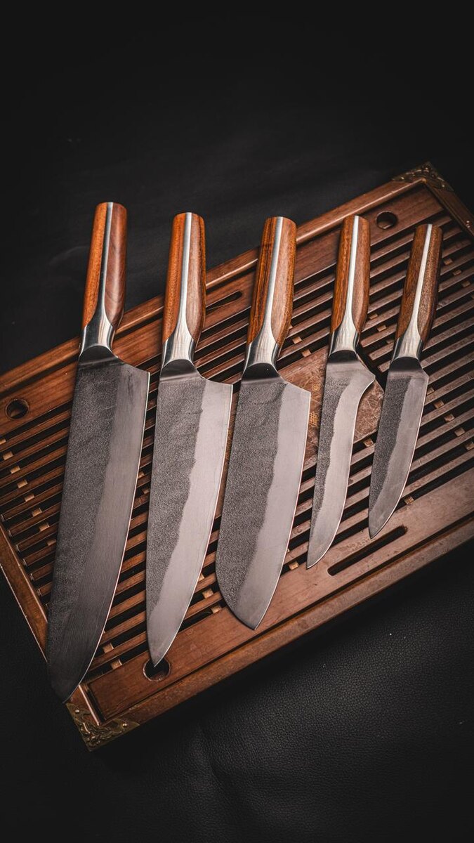 » Полноценный рабочий комплект для кухни — от тонкой филировки до серьёзной работы по мясу и овощам. Делали с упором на баланс, удобство и долговечность. В серии 5 ножей, которые закрывают любые кулинарные задачи: 1️⃣ Шеф 2️⃣ Универсал 3️⃣ Сантоку 4️⃣ Филейный 5️⃣ Малый универсальный 🔪 Сталь клинка: дамасская 10Cr15MoV ⚙️ Твёрдость: 58–62 HRC 🛠 Рукоять: нержавеющая сталь 430 + вставка из натурального дерева (бубинга / африканский палисандр) Клинки получились очень злые по резу — держат остроту долго и спокойно переживают активную кухонную работу. Визуально коллекция получилась в духе настоящей таёжной эстетики — строгие формы, тёмный клинок, тёплое дерево. Без лишнего пафоса, но с характером. Как вам коллекция «Тайга»? Интересно ваше мнение — пишите в комментариях 🔥 ‼️ Все заказы и вопросы — только в личные сообщения 👉🏻📱 Написать Михаилу 🔪 Подписаться на БАРК РФ в MAX