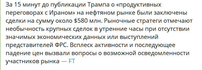 Если говорить прямо, рынок двигает именно фундаментал.Новости, заявления, решения, геополитика — всё это становится причиной движения цены. Но вопрос в другом: можем ли мы заранее знать, какая именно новость выйдет? В большинстве случаев — нет. Хотя рынок устроен так, что кто-то узнаёт это раньше остальных. Именно поэтому крупные деньги часто начинают действовать ещё до того, как новость становится публичной для толпы. Первые две картинки как раз хорошо показывают эту механику. Ещё до выхода новости в рынке уже проходили аномальные сделки и повышенная активность, которые сложно назвать случайностью. То есть сначала в графике и объёмах появляется след крупного участника, а уже потом выходит инфоповод, который становится объяснением для всех остальных. И вот здесь в игру вступает теханализ. Потому что теханализ — это не про «магические линии». Это про чтение поведения цены, объёма и действий крупного участника. Именно через график мы можем увидеть то, что ещё не успели озвучить в новостя