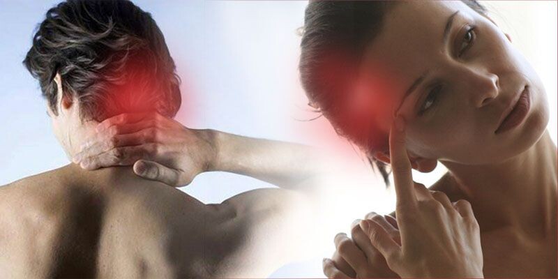 В месте, где затылок переходит в шею, есть ямка. Там проходят затылочные нервы. Когда мышцы спазмированы, они сдавливают эти нервы, и боль идет по голове, иногда отдавая в глаза.
