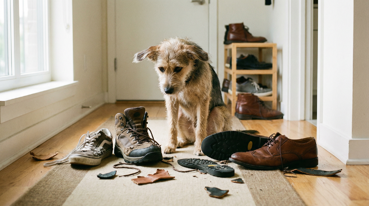 Три пары. За неделю. Кроссовки, ботинки и те самые кожаные туфли, которые жена берегла для особых случаев. Знакомый, Серёга из Воронежа, позвонил мне в субботу утром и сказал одну фразу: «Я его отдам». Он не шутил. Собаку звали Купер. Восемь месяцев, метис с дворнягой, подобрали щенком. Весёлый, ласковый, с хвостом-вертолётом. Но обувь грыз так, будто это было делом всей его жизни. Серёга перепробовал всё. Прятал ботинки в шкаф, но Купер каким-то образом открывал дверцу. Покупал резиновые игрушки, а тот их игнорировал и шёл прямиком к обуви. Ругал, тыкал носом в следы преступления, запирал на кухне. Без результата. И вот тут начинается та часть, ради которой я вообще это пишу. Когда Серёга начал описывать свой обычный день, картина сложилась за пять минут. Утром встал, покормил Купера и ушёл на работу. Вернулся через девять часов, погулял пятнадцать минут вокруг дома, покормил и сел за телевизор. Вот и вся жизнь Купера. Девять часов в пустой квартире, пятнадцать минут на улице и миска.