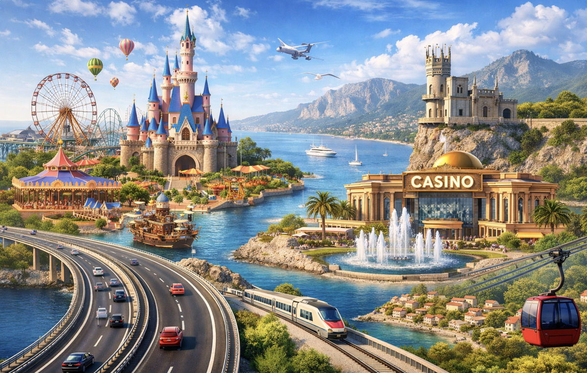 Крым продолжает активно развиваться как туристический и инвестиционный регион. На ближайшие годы запланированы крупные инфраструктурные проекты, которые могут изменить экономическое лицо полуострова и повлиять на рынок недвижимости, туризм и транспортную доступность региона. 📌 Golden Sands Resort — один из самых масштабных проектов, запуск которого анонсирован на 2025 год. Это туристический комплекс стоимостью около 60 млрд рублей между городами Саки и Евпаторией. Он займет территорию в 226 гектаров и станет платформой для развития пляжного туризма, развлечений и отдыха. Уже начаты подготовительные работы и проработка деталей реализации. Проект предусматривает модернизацию дорог, в том числе реконструкцию участка длиной более 18 км вдоль побережья — это повысит доступность комплекса и даст толчок развитию региона. ❗ Парк развлечений «Ялта-Парк» — крупный тематический объект, который будет сочетать аттракционы, гостиницы, кафе, магазины и аквапарк на территории около 56 гектаров. Бюдж