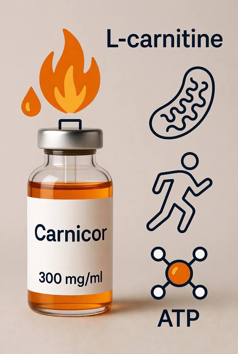 Он работает как «транспортёр» длинноцепочечных жирных кислот. Переносит их в митохондрии клеток — «энергетические станции» организма. Там жиры окисляются и превращаются в энергию (АТФ). Без достаточного количества L-карнитина этот процесс замедляется.