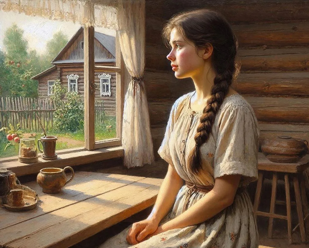 Из дома вышла фигура в платке, с коромыслом на плече. Кто же это? Фигура обернулась и он увидел Дарью.
