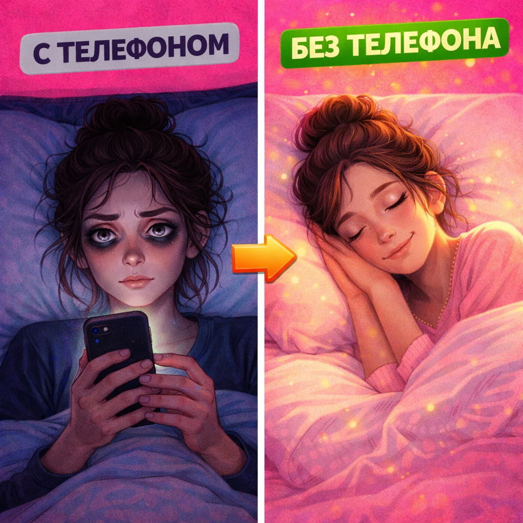 - Убрать телефон за час до сна — синий свет убивает мелатонин