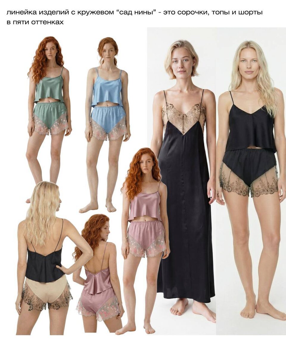 Даже для нас «Сад Нины» — про цвет, весну и чуть больше открытого, чем обычно 5 оттенков: чёрный, бронзовый, розовый щербет, небесно-голубой, тёмная мята — чёрный/бронзовый: чёрное кружево на телесной сетке — цветные: нежное цветочное кружево Цены: трусы — 3 980 ₽ топы — 3 980 ₽ (с регулировкой — 2 980 ₽) сорочка — 10 680 ₽ Размеры: сорочки 40–58 Топы, шорты: 40–54 Состав: 100% TENCEL™ Lyocell + мягкое кружево На сайте сейчас представлены изделия в черном цвете. Для всего остального напишите нам в ответном сообщении что понравилось — всё оформим ✉️ Лимитированная коллекция