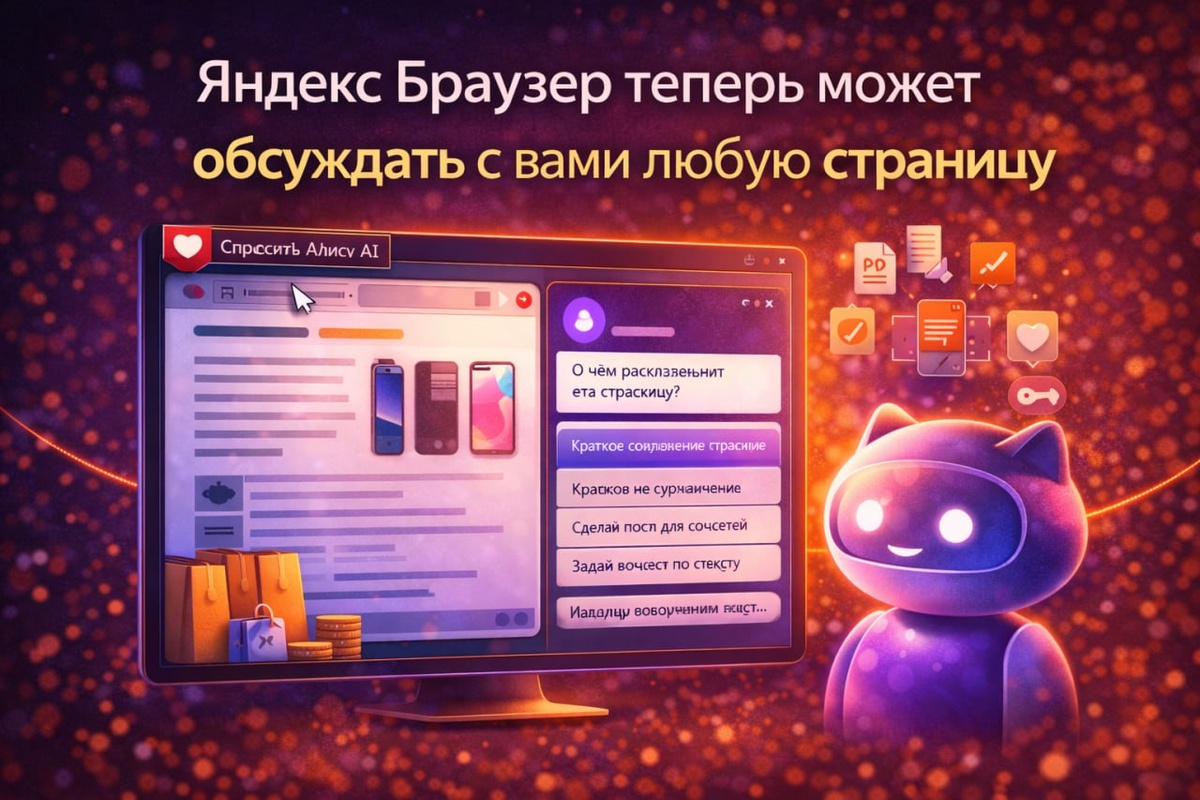 (к посту сгенерил картинку и специально не стал исправлять ошибки в тексте, как некою постиронию того что вам расскажет ИИ) В 🌐 Browser уже давно появилась функция: диалог с нейросетью, а теперь она заработала прямо на любой веб-странице. Работает это так: браузер делит экран на две части (split-view): 🤩слева открыта страница 🤩справа чат с Alice AI И можно буквально обсуждать с нейросетью то, что вы сейчас читаете. Нажимаете кнопку «Спросить Алису AI» - и дальше можно: попросить краткое содержание страницы, сделать пост для соцсетей, задать вопросы по тексту, попросить объяснить сложную тему.Причём система умеет работать даже с некликабельным текстом. Например: 🤩 задачами на сайтах 🤩PDF 🤩 видео 🤩 экзаменационными билетами То есть теперь можно открыть страницу, сказать: «Объясни это простыми словами» и получить готовый разбор. Звучит, конечно, красиво. По сути браузер постепенно превращается в мини-ChatGPT, встроенный прямо в интернет. Чтобы пользователь меньше ходил по