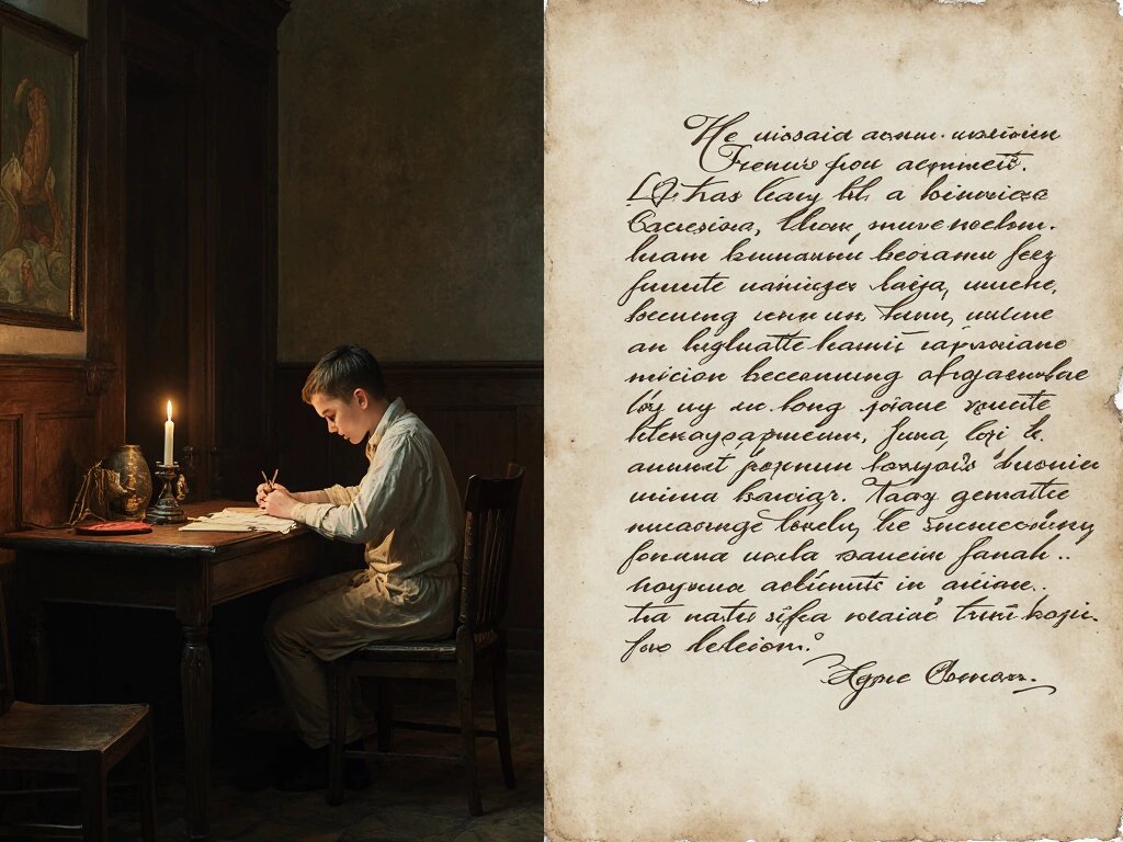 Представь: отрок, корпящий над науками зело прилежно, но в час экзамена терпящий фиаско. Не от недостатка ума, но от дьявольского своенравия собственной руки! Вот он, бледный как полотно, выводит на бумаге строки. Мысль его чиста и быстра, как горный поток, но пальцы, сжимающие перо, будто бы скованы недугом. Буквы пляшут, словно бесы на шабаше: «о» у него сродни «а», «п» как «т», а «м» и вовсе сбежала, оставив вместо себя закорючку, достойную китайского мудреца. Сидит за кафедрой профессор, важный, как индейский петух. В очках своих он силится разобрать каракули. Пыхтит, морщит лоб, протирает стёкла — тщетно! Видит он не ответ о походах Александра Македонского, а загадочную вязь, будто бы курица, обмакнув лапу в чернила, пробежала по листу. И что же? Вместо пятёрки — кол. Вместо похвалы — укор. Ибо где не видно смысла, там начинаются домыслы, а где домыслы — там и до греха недалеко. Так погибает знание, погребённое под безобразными знаками. Не почерк, а сущая напасть! Берегись, студен