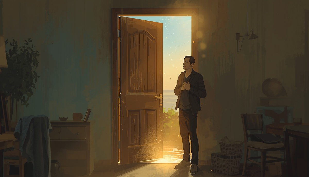Он открыл глаза. Сидел в том же кафе, за тем же столиком. Но внутри было иначе. Там, в груди, остался свет того сада. И он знал: дверь не закрылась. Она просто стала невидимой. Но она там. Всегда.