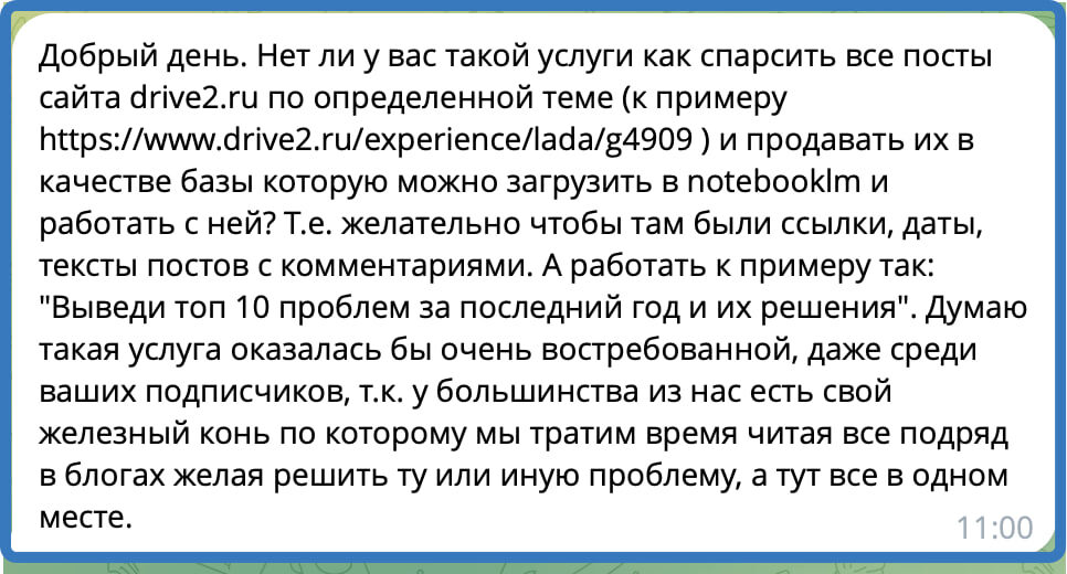 Хорошая бизнес- идея, к слову. Просто почитайте на картинке. Я правда не знаю, потянет ли ИИ такой объем входящих токенов... Но подход очень любопытный. @clickfraud.ru