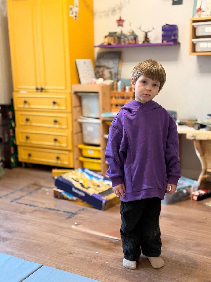 ?» Уговорила Тимофея утром постоять пару секунд, чтобы сфоткать толстовку, видимо, боюки будут в следующий раз🤭 Шью уже вторую такую по выкройке #vikisews_харпер , на этот раз из футера трехнитки петля На что не пойдешь, когда невозможно найти ничего фиолетового цвет в магазинах детской одежды🤭 До этого шила ее же из трехнитки с начесом, и он ее до сих пор носит. Уж больно удачная модель, свободная и немного уколоченная спереди, с аккуратными карманами и большим капюшоном. На Тимофее сейчас 116 размер, при росте 110 она прям с хорошим запасом. Теперь понимаю, что шить можно в размер, а не как обычно, когда в масмаркете с запасом вещи берешь. Уверена, что буду повторять ее еще не один раз. Особенно учитывая, что у меня выкройки на нее аж до 158 размера есть 🤭