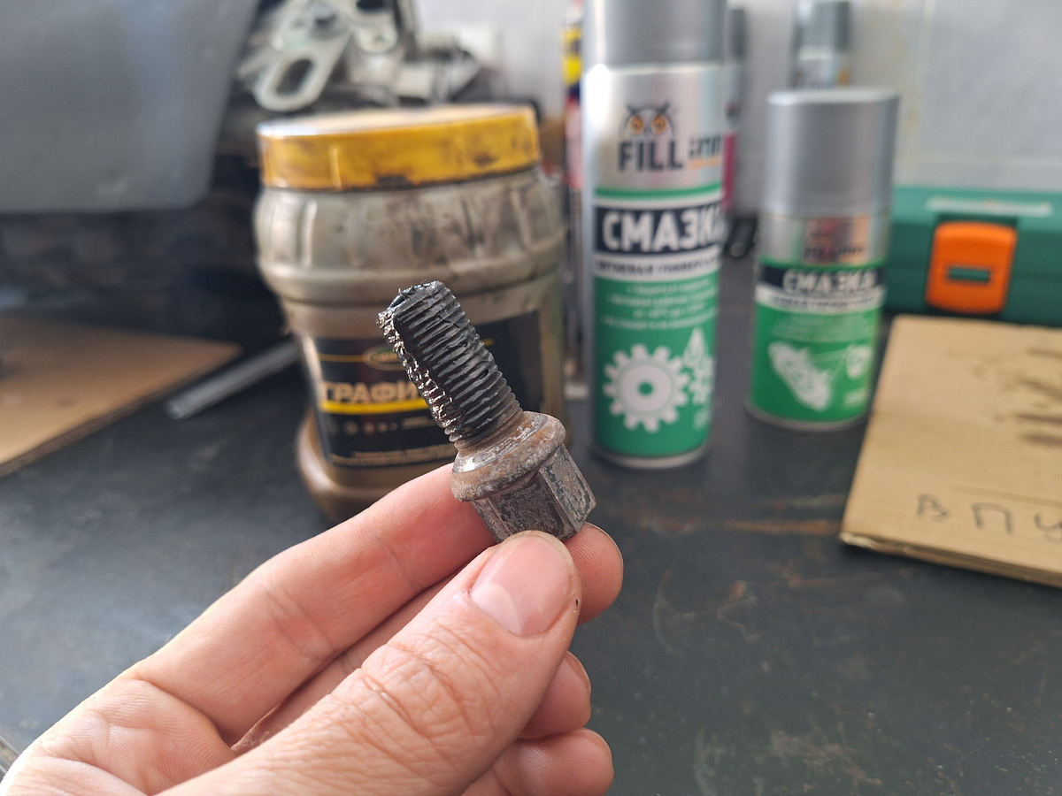 Приветствую, друзья и сегодня мы поговорим о том, какие 3 распространённых ошибки допускают многие автолюбители при закручивании колёсных болтов или гаек. На первый взгляд может показаться, что процесс затяжки болтов примитивный и ошибиться тут не может даже дилетант, но на деле даже водители с многолетним стажем допускают из раза в раз одни и те же ошибки, которые могут привести к неприятным последствиям. Итак, разберем каждую из этих ошибок подробно. Первая ошибка, это смазывание резьбы на болтах или шпильках перед закручиванием. Многие водители привыкли мазать болты или шпильки графитной смазкой, ссылаясь на то, что смазка позволит защитить резьбу от коррозии и прикипания соединений. Но руководствуясь, казалось бы, здравым смыслом, мы делаем таким образом только хуже, так как смазанная резьба может привести как к перетяжке болта или гайки, так и самопроизвольному откручиванию при движении. Открыв любое заводское руководство по эксплуатации, будь то Тойота или Фольксваген, в нём б