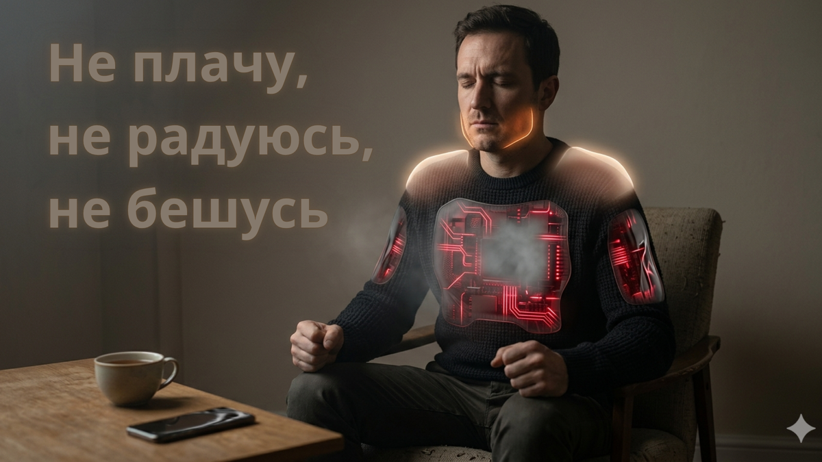 Ты прошёл через слишком многое. Стресс, неопределённость, давление, необходимость держать лицо, быть опорой, тащить, не показывать страха. И в какой-то момент психика сказала: «СТОП. СЛИШКОМ МНОГО. ОТКЛЮЧАЮ ЧУВСТВА».