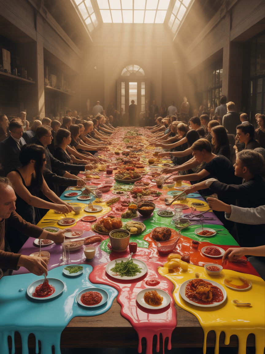 Большой стол, знакомые лица, еда, разговоры, смех. Такой сон почти физически ощущается: тепло, запах еды, ощущение, что все свои. Просыпаешься и хочется, чтобы это было наяву. Это один из самых добрых снов, которые бывают. Совместный стол во сне - это про принадлежность. Не в смысле собственности, а в смысле «я здесь свой, меня здесь ждут, мне здесь рады». Это одна из базовых человеческих потребностей, и психика умеет напоминать о ней именно через образ застолья. Когда снится такой сон, чаще всего это означает одно из двух. Либо в вашей жизни сейчас есть это ощущение близости, и психика его фиксирует, говорит: вот оно, держи. Либо этого не хватает, и сон восполняет нехватку хотя бы на ночь. А вот что интересно: оба варианта хорошие. В первом случае сон помогает заметить то, что есть. Во втором, подсказывает, чего хочется. Если за столом были живые и умершие вместе - часто это очень теплый сон про связь с теми, кого уже нет рядом. Психика умеет собирать всех за одним столом. Если кого-т