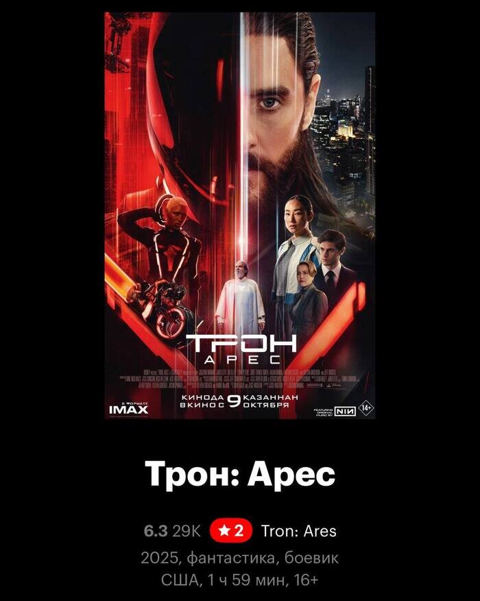 Полная ересь, печатают живое и материальное из воздуха и всё живёт 20 минут. Всё пытаются наполнить отсылками к прошлым частям, но бескровные бои и примитивный сюжет для детей делают фильм пустым. У первого Трона была идея, а время выхода и попытки в графон сделали его культовым. Второй Трон я смотрел в кинотеатре "ПИК" на Сенной и мне понравился визуал, динамика и саундтрек! Фильм прошёл проверки временем. А этот Трон: Арес только закопал все мечты о нормальном продолжении, ещё и Джаред Лето запачкался.