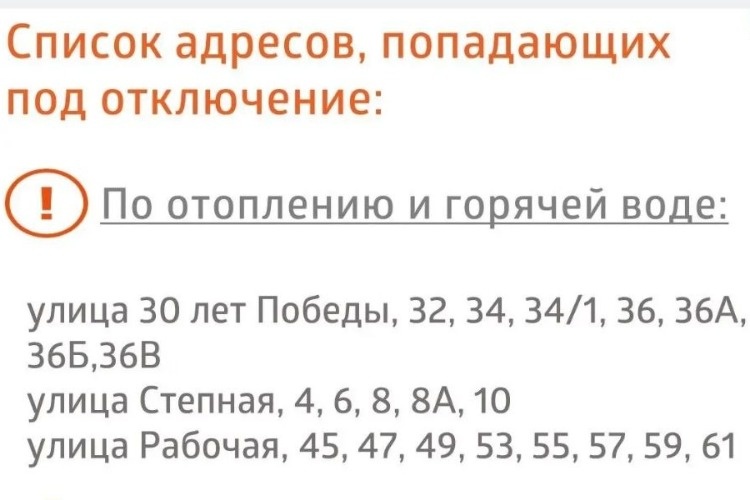 Теплоэнергетики только что известили: Уважаемые балаковцы! На улице потеплело, и сегодня мы будем устранять на тепловых сетях дефекты, которые выявили ранее при плановых осмотрах. Заменим около 50 метров трубопроводов. На время работ ограничим подачу тепла в некоторые дома. Их список — в карточке. Завершить ремонты планируем до конца суток. Ремонты повысят качество отопления в ваших квартирах. Приложим максимум усилий, чтобы возобновить теплоснабжение и горячее водоснабжение как можно оперативнее.