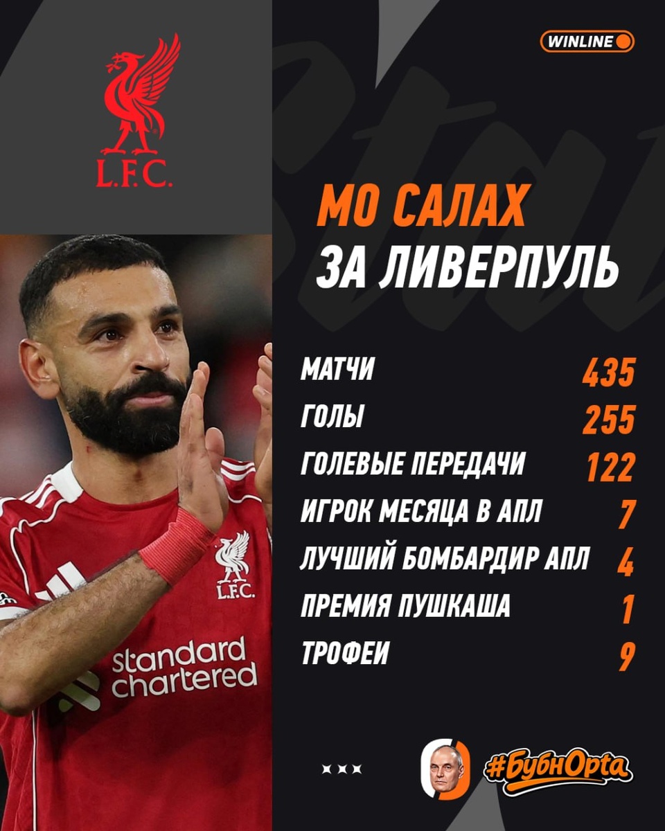 ✍️ Салах уйдет свободным агентом — Фабрицио Романо У Мо контракт до 2027 года, но Ливерпуль решил отпустить его бесплатно. Пойдет в топ-клуб или уедет в Саудовскую Аравию?