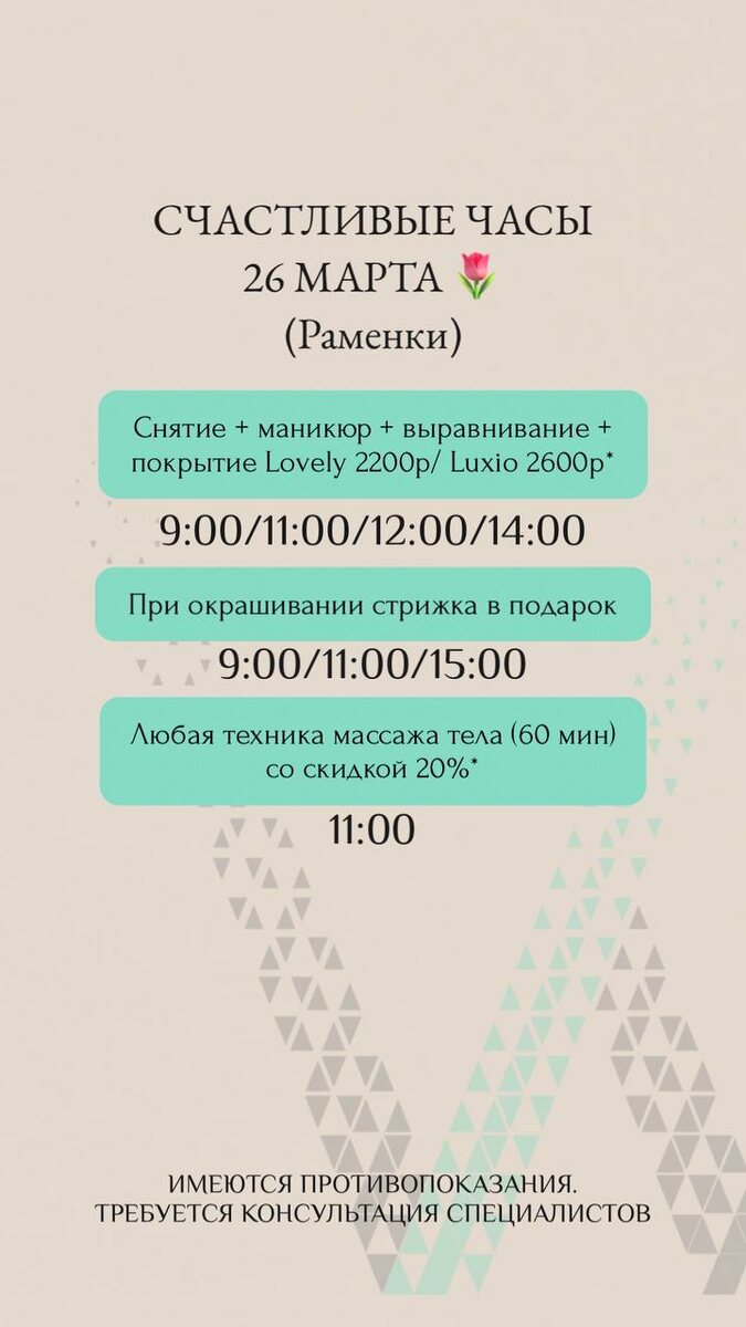 26 МАРТА (завтра)🌷 Окна на сегодня 👈 Не упустите возможность записаться на любимые услуги со скидкой 20% Акции и скидки не суммируются! Для записи👇🏻 📞 +7(499)4553857 💌 @womansalonchat