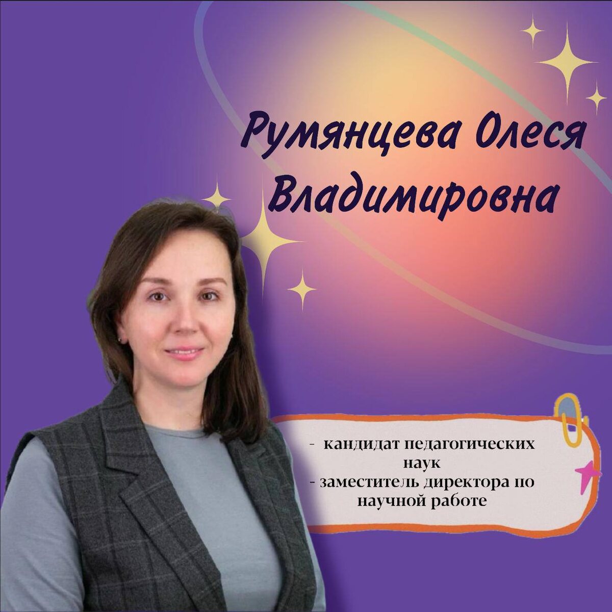 🟣 Прошлая героиня нашей рубрики говорила, что путь к профессии – это иногда поиск, а иногда мечта с детства. Сегодняшний гость – подтверждение тому, что мечты действительно сбываются, даже если на пути случаются интересные повороты. 💜 Олеся Владимировна Румянцева Заместитель директора Института русского языка по научной работе 💜Кандидат педагогических наук 💜Преподаватель русского языка как иностранного – Кем вы мечтали стать в детстве? «В детстве мечты были разными. Сначала я хотела быть учителем. У меня же преподавательская династия: мама, бабушка и прабабушка. А потом был период, когда я мечтала о журналистике и даже ходила в школу юного журналиста. Но в итоге судьба привела меня на филфак, а затем и в науку. Так что, можно сказать, моя детская мечта всё-таки реализовалась, просто в педагогике». – Почему именно преподавание и работа с иностранцами? «Всё решил случай (а может, судьба) во время учёбы в вузе. Со мной в группе учились ребята из Китая. Это был мой первый опыт общ