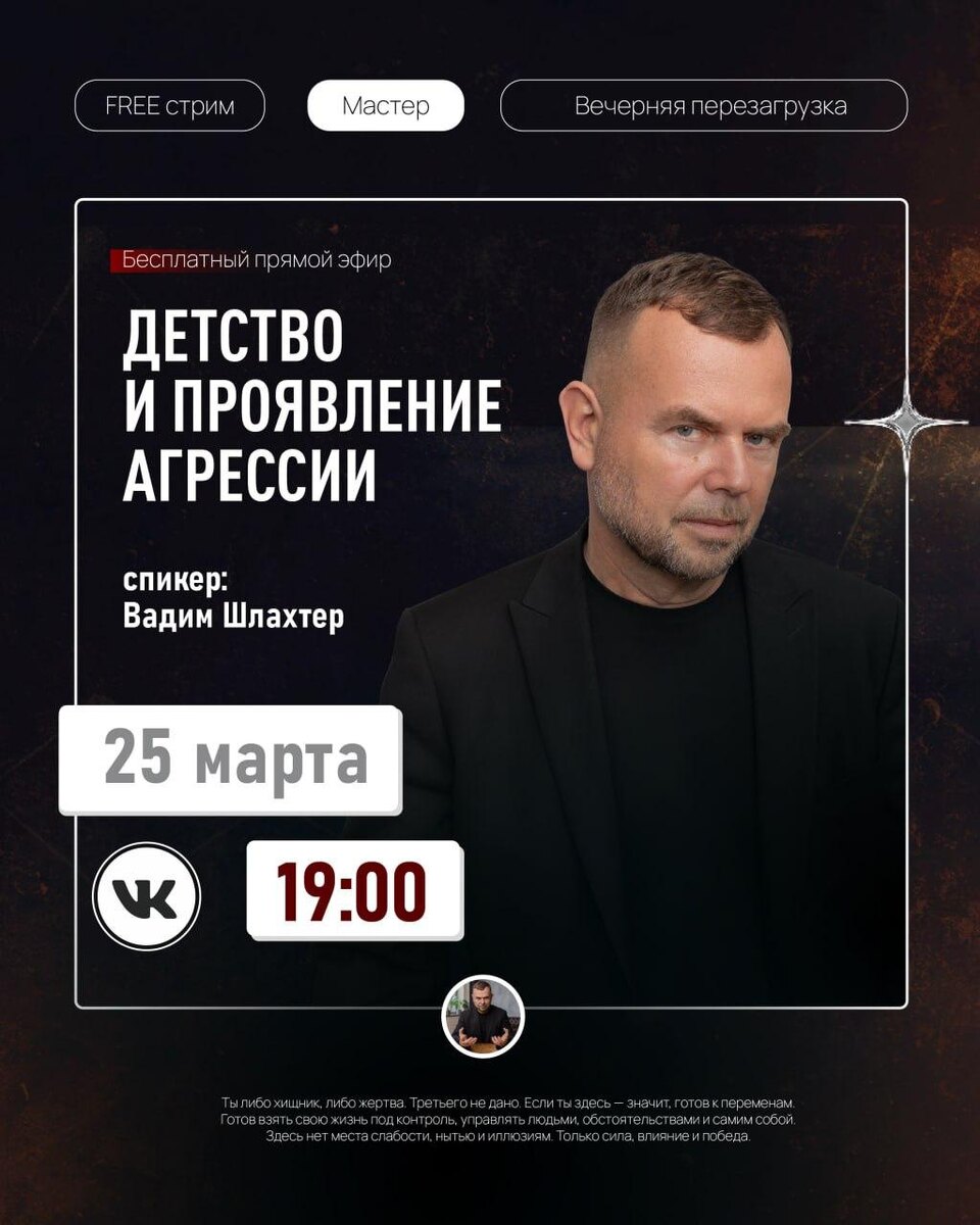 » Задавай свои вопросы по теме в комментариях к этому посту. На все отвечу в прямом эфире. ⏳ 25 марта в 19:00 (до 30 минут) 🕙 Подключайся только Вконтакте. Я провожу «Вечернюю перезагрузку» каждую среду. Запись эфира выложу в частном канале. Обо мне | Благодарность команде | Навигация