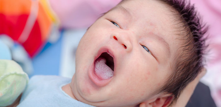 - Постепенно молочница может поразить и кишечник малыша, проявляется даже на половых органах новорожденного. Запах изо рта очень явный.