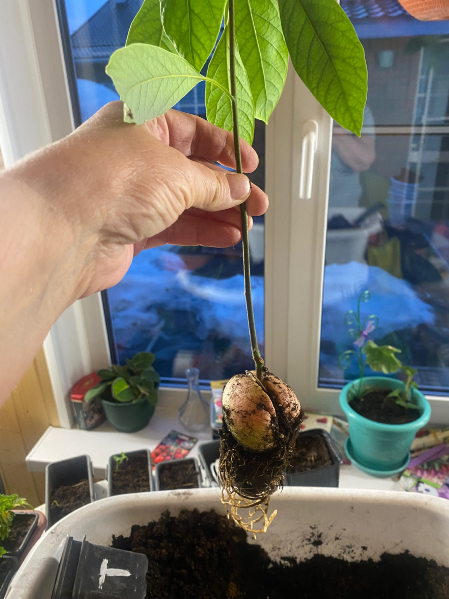 А вот смотрите на корень авокадо – это я сама вырастила из такого внутреннего ореха авокадо.