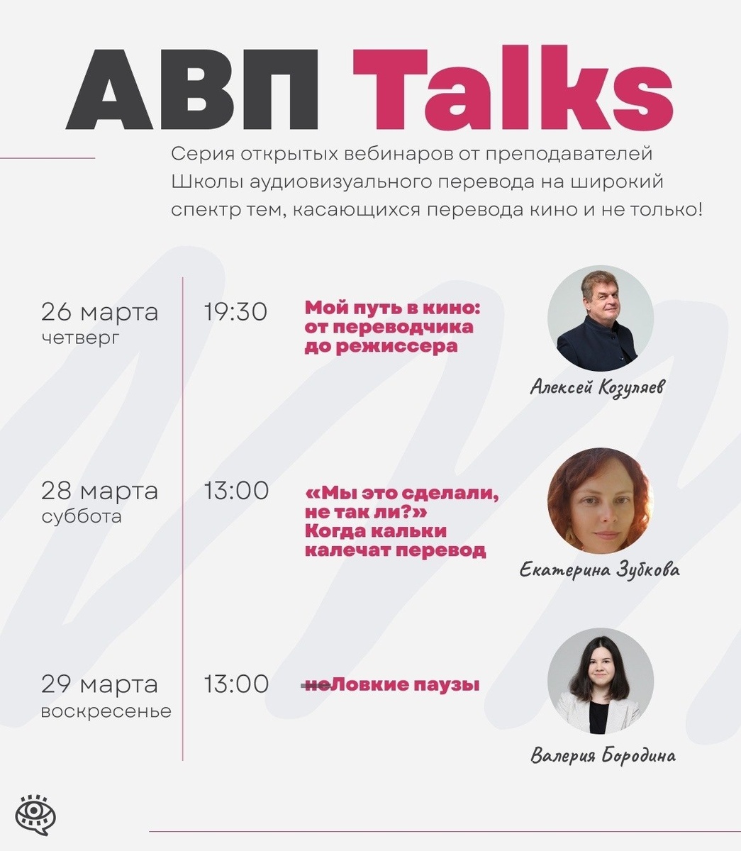 ! 🎬🌸 Новая серия открытых вебинаров о кино и не только! Будет возможность послушать практиков (в том числе меня), задать вопросы и обсудить развитие в профессии. Участие бесплатное, нужна только регистрация. 👉 Зарегистрироваться: avtschool.getcourse.ru/avp-talks