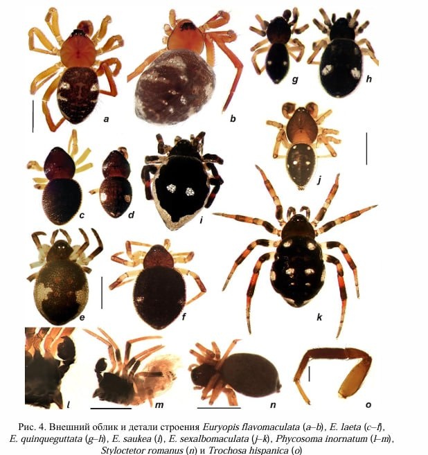 В Крыму нашли «невидимых» пауков из Европы: два ранее не замеченных на полуострове вида скрывались в восточной части полуострова. Корреспондент Крымского информационного агентства выяснил, насколько они опасны и могут ли «домашние» пауки прокусить человеческую кожу. Неожиданное открытие сделано во время экспедиции в восточной части полуострова. Учёные нашли два ранее не зафиксированных здесь вида — Euryopis laeta и Phycosoma inornatum. Оба паука, как выяснилось, имеют в большей степени европейский ареал обитания европейское происхождение и раньше в Крыму не встречались. «Сами пауки некрупного размера. Поскольку они живут в подстилке, ведут скрытный образ жизни, то долгое время оставались незамеченными для всех. Новые виды не представляют опасности для человека ввиду своих мелких размеров — до 2 – 2,5 мм максимум. Если говорить про Euryopis laeta, то у этого маленького паучка брюшко тёмно-чёрного цвета. Отличительно, что на нём есть четыре красные точечки сверху. Головогрудь тёмно-корич