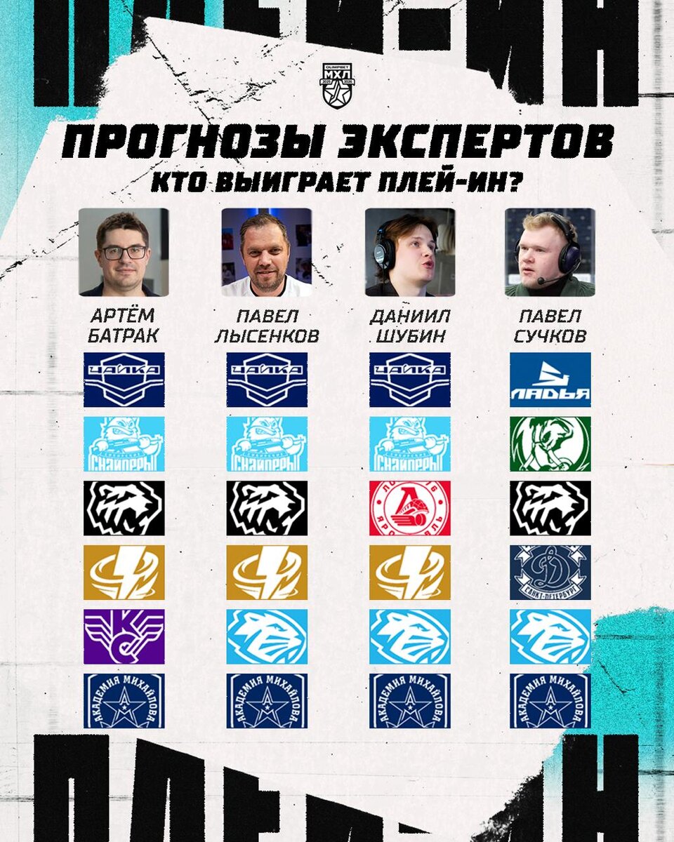 Даёшь Владивосток в плей-офф!» Эксперты Артём Батрак, Павел Сучков, Павел Лысенков и Даниил Шубин сделали свои прогнозы на плей-ин. Пишите в комментариях свои предположения👇 🏒@mhlrus