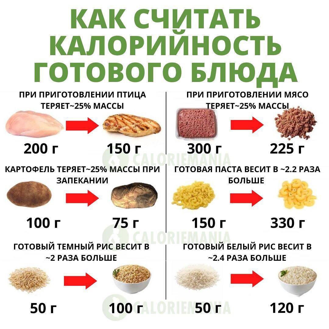 Девушка находится сейчас в процессе снижения веса и считает ккал. Среди прочего в ее посте фигурирует такое умозаключение: «Гречка оч калорийна. В отличие от печеной/ вареной картошки. Ее хоть обожрись, потрясающий продукт»(с.) Друзья, хочу чтоб вы знали: Гречка и вареная картошка сопоставимы по калорийности (≈80–90 ккал на 100 г в готовом виде). В процессе приготовления все продукты ужариваются, либо упариваются. Крупы, мясо и овощи меняют свой объем, их калорийность на 100 грамм готового продукта будет отличаться от сырого варианта! 🔹Мясо, птица, рыба при приготовлении теряют влагу и объем уменьшается. 🔹Овощи также теряют влагу, а вместе с ней уменьшаются в объеме. 🔹Крупы и макаронные изделия, наоборот, впитывают влагу – их объем увеличивается. ❓Как рассчитывать калорийность готового блюда? Например, у вас есть рис. ⠀ ✅На пачках обычно пишут БЖУ и калорийность круп в сухом виде. Поэтому всё, что нужно сделать — взвесить продукт в сухом виде. Так вы получите максимально точн